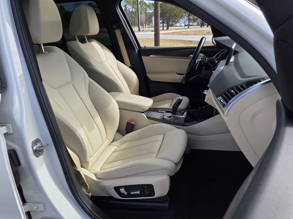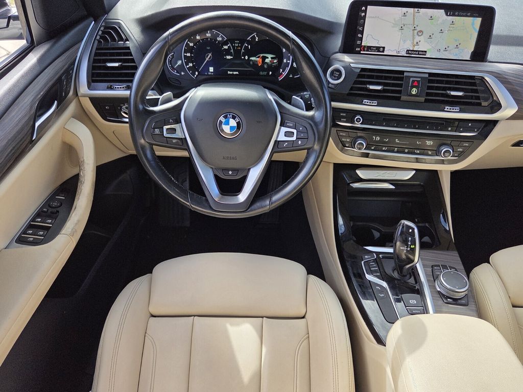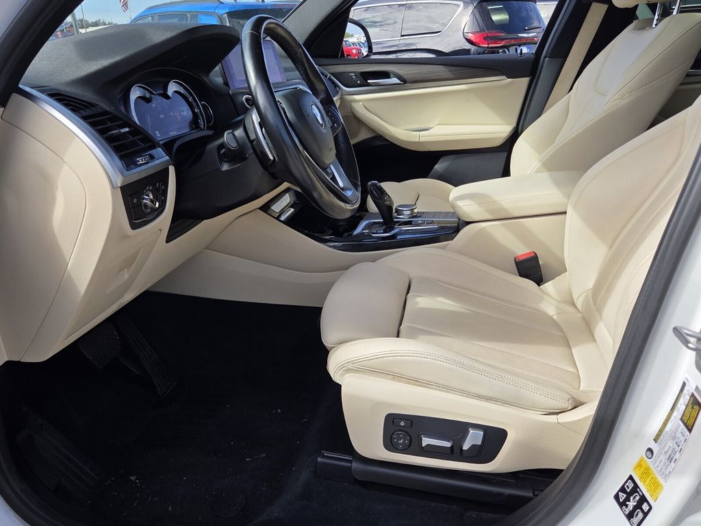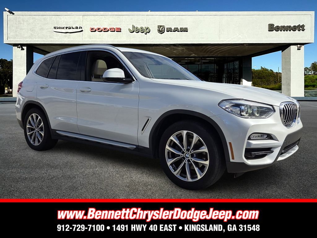 Bennett Chrysler Jeep Dodge Ram is proud to offer this charming 2019 BMW X3 in White Metallic This vehicle has passed our comprehensive inspection and comes with the following 8-Speed Automatic, 12 Speakers, 3.385 Axle Ratio, 4-Wheel Disc Brakes, ABS brakes, Active Blind Spot Detection, Active Driving Assistant, Advanced Real-Time Traffic Information, Air Conditioning, Alloy wheels, AM/FM radio, Apple CarPlay Compatibility, Auto-dimming door mirrors, Auto-dimming Rear-View mirror, Automatic temperature control, Brake assist, Bumpers: body-color, Comfort Access Keyless Entry, Delay-off headlights, Driver door bin, Driver vanity mirror, Dual front impact airbags, Dual front side impact airbags, DVD Area Coding (North America), Electronic Stability Control, Emergency communication system: BMW Assist eCall, Exterior Parking Camera Rear, Fineline Cove Matte Finish Wood Trim, Four wheel independent suspension, Front anti-roll bar, Front Bucket Seats, Front Center Armrest, Front dual zone A/C, Front fog lights, Front reading lights, Fully automatic headlights, Garage door transmitter, Genuine wood dashboard insert, Genuine wood door panel insert, Hands-Free Bluetooth & USB Audio Connection, Heated door mirrors, Heated Front Seats, Heated Steering Wheel, Hi-Fi Sound System, Illuminated entry, Knee airbag, Lane Departure Warning System, LED Headlights w/Cornering Lights, Low tire pressure warning, Lumbar Support, Memory seat, Navigation System, Occupant sensing airbag, Outside temperature display, Overhead airbag, Panic alarm, Panoramic Moonroof, Passenger door bin, Passenger vanity mirror, Power door mirrors, Power driver seat, Power Front Seats, Power Liftgate, Power passenger seat, Power steering, Power windows, Radio Control US, Radio data system, Radio: AM/FM Stereo w/HD, Rain sensing wipers, Rear air conditioning, Rear anti-roll bar, Rear reading lights, Rear seat center armrest, Rear window defroster, Rear window wiper, Remote keyless entry, Remote Services, Roof rack: rails only, Security system, SensaTec Upholstery, SiriusXM Satellite Radio, Speed control, Speed-sensing steering, Speed-Sensitive Wipers, Split folding rear seat, Spoiler, Sport Bucket Seats, Sport steering wheel, Steering wheel mounted audio controls, Tachometer, Telescoping steering wheel, Tilt steering wheel, Traction control, Trip computer, Turn signal indicator mirrors, Variably intermittent wipers, Wheels: 18" x 7.0" Y-Spoke (Style 688), and Wheels: 19" x 7.5" (Style 692); 8-Speed Automatic.