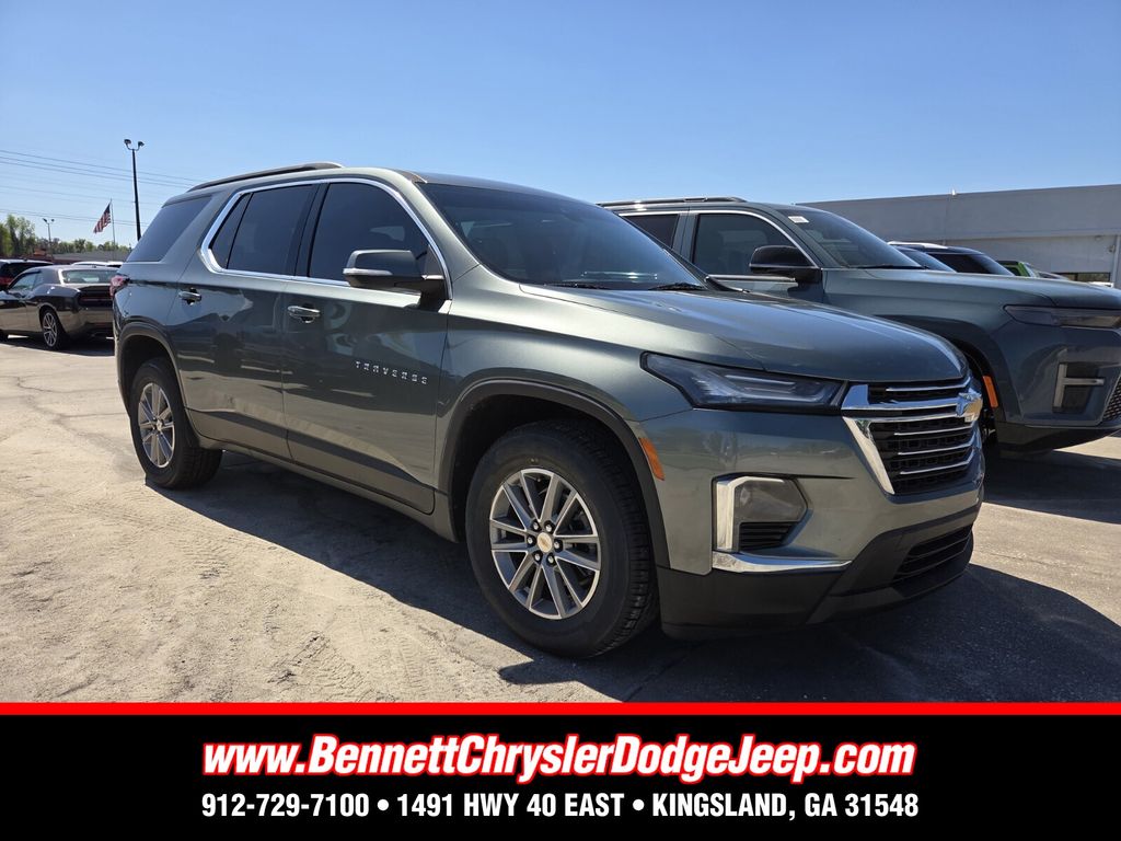 Bennett Chrysler Jeep Dodge Ram is excited to offer this stunning-looking 2023 Chevrolet Traverse in Silver Sage This vehicle has passed our comprehensive inspection and comes with the following Preferred Equipment Group 1LT, 2-Way Manual Front Passenger Seat Adjuster, 3.49 Axle Ratio, 3rd row seats: split-bench, 4-Wheel Disc Brakes, 6 Speakers, 6-Speaker Audio System Feature, 8-Way Power Driver Seat Adjuster, ABS brakes, Air Conditioning, Alloy wheels, AM/FM radio: SiriusXM, Apple CarPlay/Android Auto, Auto High-beam Headlights, Automatic temperature control, Black Roof Rails, Brake assist, Bumpers: body-color, Compass, Delay-off headlights, Driver door bin, Driver vanity mirror, Dual front impact airbags, Dual front side impact airbags, Electronic Stability Control, Emergency communication system, Exterior Parking Camera Rear, Four wheel independent suspension, Front anti-roll bar, Front Bucket Seats, Front Center Armrest, Front dual zone A/C, Front reading lights, Fully automatic headlights, Heated door mirrors, Illuminated entry, Leather steering wheel, Low tire pressure warning, Not Equipped w/Rear Park Assist (060), Occupant sensing airbag, Outside temperature display, Overhead airbag, Overhead console, Panic alarm, Passenger door bin, Passenger vanity mirror, Power door mirrors, Power Driver Lumbar Control, Power driver seat, Power steering, Power windows, Premium Cloth Seat Trim, Radio data system, Radio: Chevrolet Infotainment System AM/FM Stereo, Rear air conditioning, Rear anti-roll bar, Rear reading lights, Rear window defroster, Rear window wiper, Remote keyless entry, Security system, SiriusXM Radio, Speed control, Speed-sensing steering, Spoiler, Steering wheel mounted audio controls, Tachometer, Telescoping steering wheel, Tilt steering wheel, Traction control, Trip computer, Turn signal indicator mirrors, Variably intermittent wipers, Voltmeter, and Wheels: 18" Bright Silver-Painted Aluminum;