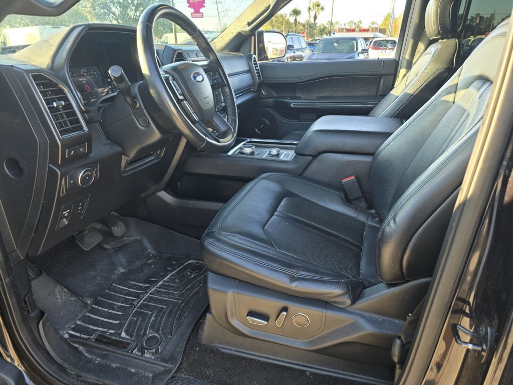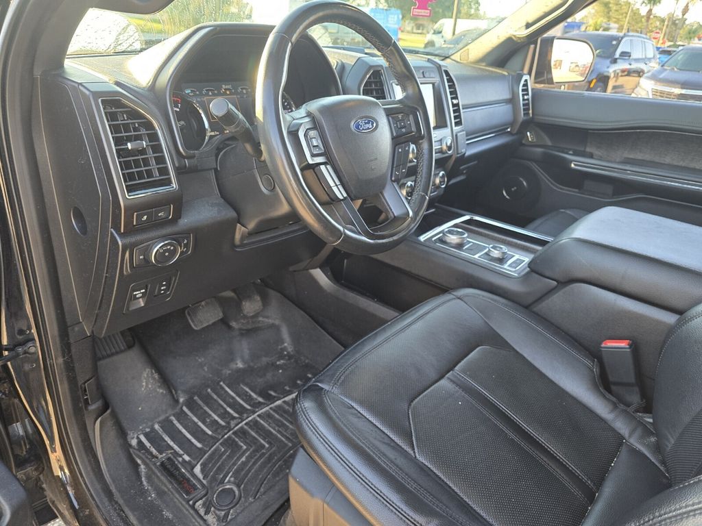 Bennett Chrysler Jeep Dodge Ram is pumped up to offer this gorgeous 2019 Ford Expedition in Black Metallic This vehicle has passed our comprehensive inspection and comes with the following Driver Assistance Package (Adaptive Cruise Control, Automatic High Beam Headlamps, Lane-Keeping System, Pre-Collision Assist, and Rain-Sensing Front Wipers), Equipment Group 302A (22" Polished Aluminum Wheels, 360-Degree Camera w/Split View, Enhanced Active Park Assist System, LED Headlamps & Fog Lamps, Panoramic Vista Roof, and Voice-Activated Touch-Screen Navigation System), 4WD, 12 Speakers, 2nd Row Leather Bucket Seats, 3.31 Axle Ratio, 3rd row seats: split-bench, 4-Wheel Disc Brakes, ABS brakes, Adjustable pedals, Air Conditioning, Alloy wheels, AM/FM radio: SiriusXM, AppLink/Apple CarPlay and Android Auto, Auto-dimming door mirrors, Auto-dimming Rear-View mirror, Automatic temperature control, Brake assist, Bumpers: body-color, Compass, Delay-off headlights, Driver door bin, Driver vanity mirror, Dual front impact airbags, Dual front side impact airbags, Electronic Stability Control, Emergency communication system: SYNC 3 911 Assist, Exterior Parking Camera Rear, Four wheel independent suspension, Front anti-roll bar, Front Bucket Seats, Front Center Armrest, Front dual zone A/C, Front fog lights, Front reading lights, Fully automatic headlights, Garage door transmitter, Heated & Cooled Leather Front Bucket Seats, Heated door mirrors, Heated front seats, Heated rear seats, Heated steering wheel, Illuminated entry, Leather steering wheel, Low tire pressure warning, Memory seat, Occupant sensing airbag, Outside temperature display, Overhead airbag, Overhead console, Panic alarm, Passenger door bin, Passenger vanity mirror, Pedal memory, Power door mirrors, Power driver seat, Power Liftgate, Power passenger seat, Power steering, Power windows, Radio data system, Radio: B&O Sound System by Bang & Olufsen, Rear air conditioning, Rear anti-roll bar, Rear audio controls, Rear reading lights, Rear window defroster, Rear window wiper, Reclining 3rd row seat, Remote keyless entry, Reversible Cargo Mat, Roof rack: rails only, Security system, SiriusXM Satellite Radio, Speed control, Speed-sensing steering, Speed-Sensitive Wipers, Split folding rear seat, Steering wheel memory, Steering wheel mounted audio controls, SYNC 3 Communications & Entertainment System, Tachometer, Telescoping steering wheel, Tilt steering wheel, Traction control, Trip computer, Turn signal indicator mirrors, Variably intermittent wipers, Ventilated front seats, Voltmeter, and Wheels: 20" Premium Dark Tarnish-Painted Aluminum; 4WD.