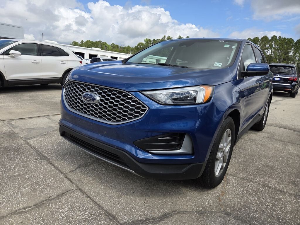 Bennett Chrysler Jeep Dodge Ram is very proud to offer this fantastic 2024 Ford Edge in Blue Metallic This vehicle has passed our comprehensive inspection and comes with the following Equipment Group 201A, AWD, 3.80 Axle Ratio, 4-Wheel Disc Brakes, 6 Speakers, ABS brakes, ActiveX Trimmed Heated Bucket Seats, Air Conditioning, Alloy wheels, AM/FM radio: SiriusXM with 360L, AM/FM Stereo, Auto High-beam Headlights, Auto-dimming Rear-View mirror, Automatic temperature control, Brake assist, Bumpers: body-color, Compass, Delay-off headlights, Driver door bin, Driver vanity mirror, Dual front impact airbags, Dual front side impact airbags, Electronic Stability Control, Emergency communication system: SYNC 4 911 Assist, FordPass Connect, Four wheel independent suspension, Front anti-roll bar, Front Bucket Seats, Front Center Armrest w/Storage, Front dual zone A/C, Front reading lights, Fully automatic headlights, Heated door mirrors, Heated front seats, Illuminated entry, Knee airbag, Leather steering wheel, Leather-Wrapped Steering Wheel, Low tire pressure warning, Occupant sensing airbag, Outside temperature display, Overhead airbag, Overhead console, Panic alarm, Passenger door bin, Passenger vanity mirror, Power door mirrors, Power driver seat, Power Liftgate, Power passenger seat, Power steering, Power windows, Rear anti-roll bar, Rear Parking Sensors, Rear reading lights, Rear seat center armrest, Rear window defroster, Rear window wiper, Remote keyless entry, SiriusXM w/360L, Speed control, Speed-Sensitive Wipers, Split folding rear seat, Spoiler, Steering wheel mounted audio controls, SYNC 4A w/Enhanced Voice Recognition, Tachometer, Telescoping steering wheel, Tilt steering wheel, Traction control, Trip computer, Variably intermittent wipers, and Wheels: 18" Sparkle Silver-Painted Aluminum; AWD.