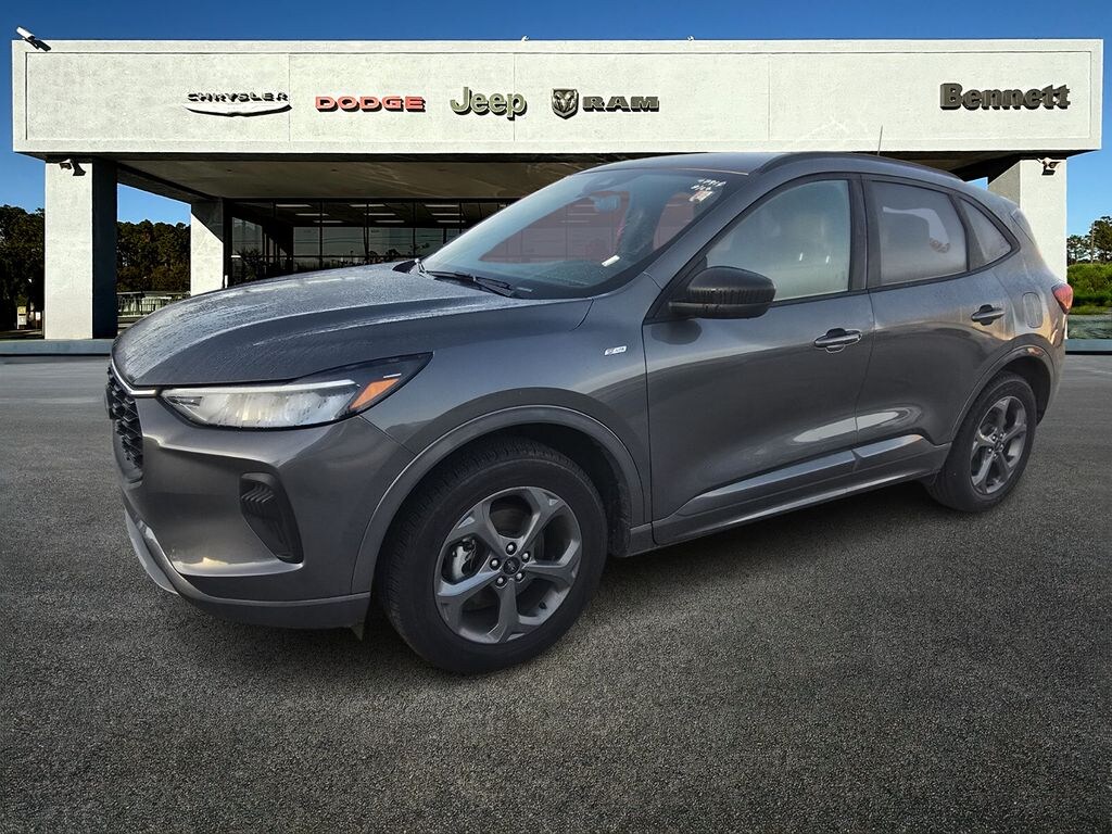 Bennett Chrysler Jeep Dodge Ram is pumped up to offer this great 2024 Ford Escape in Gray Metallic This vehicle has passed our comprehensive inspection and comes with the following Cold Weather Package (Heated Front Row Seats, Heated Sideview Mirrors, Heated Steering Wheel, and Remote Starter System), Equipment Group 300A, AWD, 3.81 Axle Ratio, 4-Wheel Disc Brakes, 6 Speakers, ABS brakes, Air Conditioning, Alloy wheels, AM/FM radio: SiriusXM, AM/FM Stereo, Auto High-beam Headlights, Automatic temperature control, Brake assist, Bumpers: body-color, Compass, Delay-off headlights, Driver door bin, Driver vanity mirror, Dual front impact airbags, Dual front side impact airbags, Electronic Stability Control, Emergency communication system: SYNC 4 911 Assist, Exterior Parking Camera Rear, FordPass Connect, Four wheel independent suspension, Front anti-roll bar, Front Bucket Seats, Front Center Armrest, Front dual zone A/C, Front reading lights, Fully automatic headlights, Illuminated entry, Knee airbag, Low tire pressure warning, Occupant sensing airbag, Outside temperature display, Overhead airbag, Overhead console, Panic alarm, Passenger door bin, Passenger vanity mirror, Power door mirrors, Power driver seat, Power Liftgate, Power steering, Power windows, Radio data system, Rear anti-roll bar, Rear reading lights, Rear seat center armrest, Rear window defroster, Rear window wiper, Remote keyless entry, Roof rack: rails only, Speed control, Speed-sensing steering, Speed-Sensitive Wipers, Split folding rear seat, Spoiler, Sport steering wheel, Steering wheel mounted audio controls, SYNC 4, Tachometer, Telescoping steering wheel, Tilt steering wheel, Traction control, Trip computer, Variably intermittent wipers, Vinyl/Cloth Front Sport Contour Bucket Seats, and Wheels: 18" Rock Metallic Painted Aluminum; AWD.