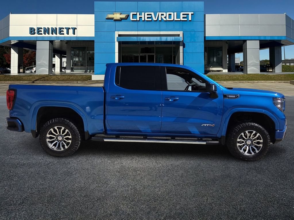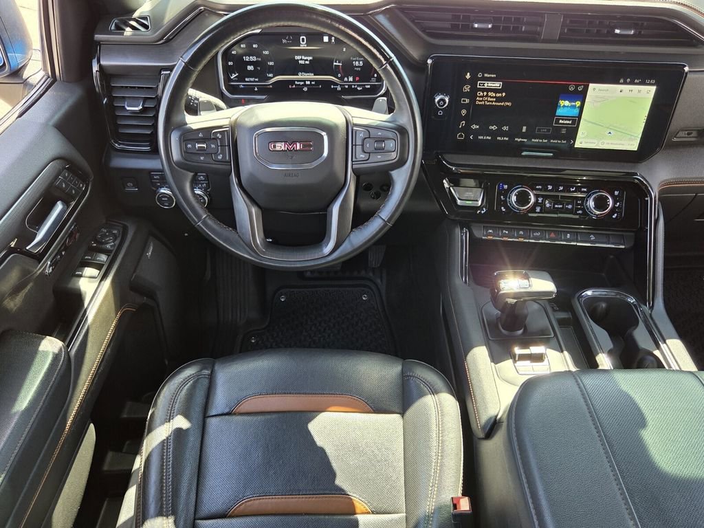 Bennett Chevrolet Buick is very proud to offer this terrific 2023 GMC Sierra 1500 in Dynamic Blue Metallic This vehicle has passed our comprehensive inspection and comes with the following Preferred Equipment Group 4SB (120-Volt Bed Mounted Power Outlet, 120-Volt Instrument Panel Power Outlet, 2 Charge/Data USB Ports Inside Center Console, 2 Type-C Charge-Only Rear USB Ports, 2 USB Ports, 220 Amp Alternator, Auto-Locking Rear Differential, Black Chrome Header & Grille Insert Bars, Color-Keyed Carpeting Floor Covering, Compass, Deep-Tinted Glass, Electric Rear-Window Defogger, Electrical Steering Column Lock, Floor-Mounted Center Console, Front Prem Floor Liners w/Removable Carpet Insert, Front Rainsensing Wipers, GMC Connected Access Capable, HD Surround Vision, Heated 2nd Row Outboard Seats, Heated Driver & Front Outboard Passenger Seating, Heavy-Duty Air Filter, Hill Descent Control, Hitch Guidance w/Hitch View, In-Vehicle Trailering App, Integrated Trailer Brake Controller, Keyless Open & Start, LED Cargo Area Lighting, OnStar & GMC Connected Services Capable, Perimeter Lighting, Power Door Locks, Power Front Passenger Windows w/Express Up/Down, Power Front Windows w/Driver Express Up/Down, Power Rake & Telescoping Steering Column, Power Rear Windows w/Express Down, Premium Bose 7-Speaker Sound System, Push Button Start, Rear Cross Traffic Braking, Rear Pedestrian Detection, Rear Prem Floor Liners w/Removable Carpet Insert, Rear Wheelhouse Liners, Red Recovery Hooks, Remote Vehicle Starter System, SiriusXM w/360L, Spray-On Pickup Bed Liner w/AT4 Logo, Steering Wheel Audio Controls, Theft Deterrent System (Unauthorized Entry), Trailer Camera Provisions, Trailer Side Blind Zone Alert, Ultrasonic Front & Rear Park Assist, Ventilated Driver & Front Passenger Seats, Wi-Fi Hotspot Capable, Wireless Charging, and Wireless Phone Projection), Technology Package (Bed View Camera, Multicolor 15 Diagonal Head-Up Display, and Rear Camera Mirror), Trailering Package (Hitch Guidance), 10-Speed Automatic, 4WD, Jet Black With Kalahari Accents Leather, 10-Way Power Driver Seat Adjuster w/Lumbar, 10-Way Power Passenger Seat Adjuster w/Lumbar, 18 x 8.5 Machined Aluminum Wheels, 3.23 Rear Axle Ratio, 4-Wheel Disc Brakes, 7 Speakers, ABS brakes, Air Conditioning, Alloy wheels, AM/FM radio, Apple CarPlay/Android Auto, Auto High-beam Headlights, Auto-dimming door mirrors, Auto-dimming Rear-View mirror, Automatic Emergency Braking, Automatic temperature control, Block heater, Brake assist, Buckle to Drive, Bumpers: body-color, Delay-off headlights, Driver door bin, Driver Memory, Driver vanity mirror, Dual front impact airbags, Dual front side impact airbags, Electronic Stability Control, Emergency communication system: OnStar and GMC connected services capable, Engine Block Heater, Following Distance Indicator, Forward Collision Alert, Front anti-roll bar, Front Bucket Seats, Front Center Armrest, Front dual zone A/C, Front fog lights, Front License Plate Kit, Front Pedestrian Braking, Front reading lights, Front wheel independent suspension, Fully automatic headlights, Heated door mirrors, Heated front seats, Heated rear seats, Heated steering wheel, Illuminated entry, IntelliBeam Automatic High Beam On/Off, Lane Keep Assist w/Lane Departure Warning, Low tire pressure warning, Memory seat, Navigation System, Not Equipped w/Steering Column Lock, Occupant sensing airbag, Off-Road Suspension, Outside temperature display, Overhead airbag, Overhead console, Panic alarm, Passenger door bin, Passenger vanity mirror, Perforated Front Leather Seat Trim, Power door mirrors, Power driver seat, Power passenger seat, Power steering, Power windows, Premium audio system: GMC Infotainment System, Radio data system, Radio: Premium GMC Infotainment Audio System, Rain sensing wipers, Rear reading lights, Rear seat center armrest, Rear step bumper, Rear window defroster, Remote keyless entry, Safety Alert Seat, Security system, Speed control, Speed-sensing steeri