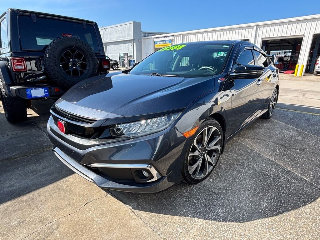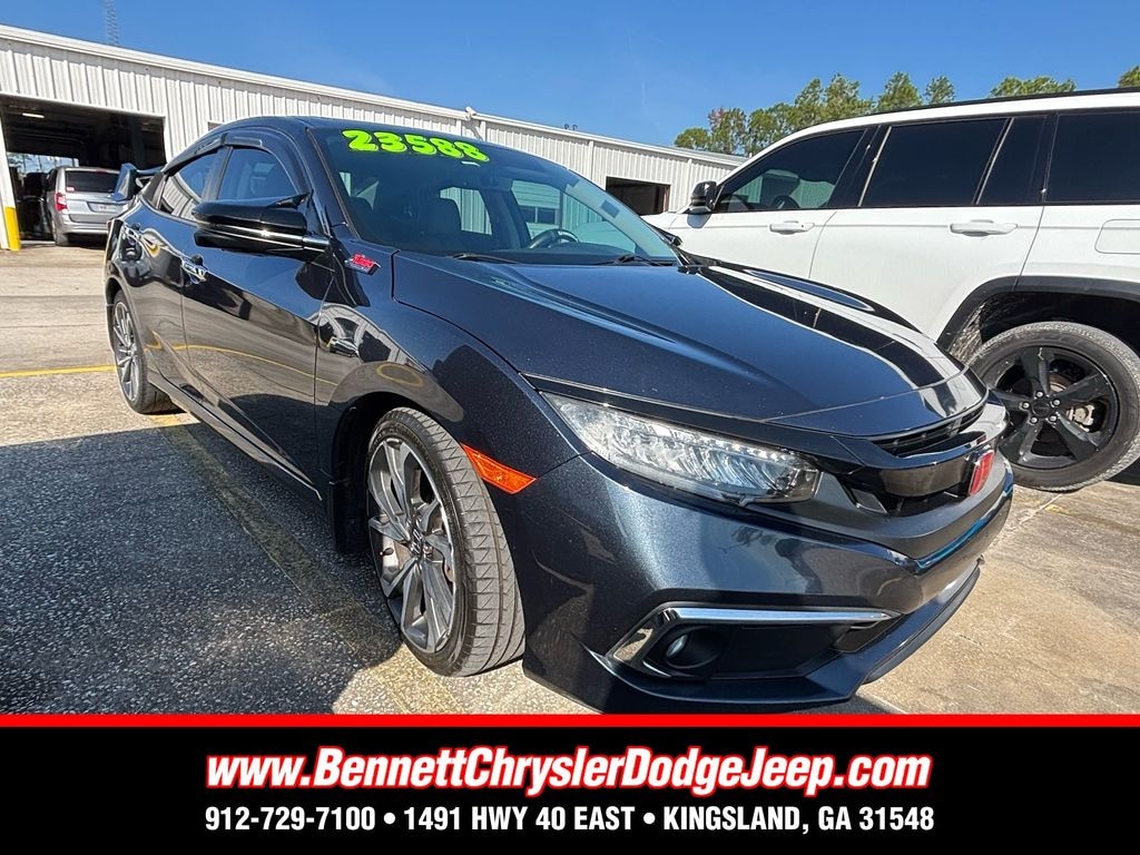 Bennett Chrysler Jeep Dodge Ram is proud to offer this terrific 2020 Honda Civic in Gray This vehicle has passed our comprehensive inspection and comes with the following Leather, 10 Speakers, 4-Wheel Disc Brakes, ABS brakes, Adaptive Cruise Control: Adaptive Cruise Control (ACC) with Low-Speed Follow, Air Conditioning, Alloy wheels, AM/FM radio: SiriusXM, Apple CarPlay/Android Auto, Auto High-beam Headlights, Auto-dimming Rear-View mirror, Automatic temperature control, Brake assist, Bumpers: body-color, Compass, Delay-off headlights, Driver door bin, Driver vanity mirror, Dual front impact airbags, Dual front side impact airbags, Electronic Stability Control, Emergency communication system: HondaLink, Exterior Parking Camera Rear, Forward collision: Collision Mitigation Braking System (CMBS) + FCW mitigation, Four wheel independent suspension, Front anti-roll bar, Front Bucket Seats, Front Center Armrest, Front dual zone A/C, Front fog lights, Front reading lights, Fully automatic headlights, Garage door transmitter: HomeLink, Heated door mirrors, Heated Front Bucket Seats, Heated front seats, Heated rear seats, Illuminated entry, Lane departure: Lane Keeping Assist System (LKAS) active, Leather Seat Trim, Leather Shift Knob, Low tire pressure warning, Navigation system: Honda Satellite-Linked Navigation System, Occupant sensing airbag, Outside temperature display, Overhead airbag, Overhead console, Panic alarm, Passenger door bin, Passenger vanity mirror, Power door mirrors, Power driver seat, Power moonroof, Power passenger seat, Power steering, Power windows, Radio data system, Radio: 450-Watt AM/FM/HD/SiriusXM Audio System, Rain sensing wipers, Rear anti-roll bar, Rear seat center armrest, Rear window defroster, Remote keyless entry, Security system, Speed control, Speed-sensing steering, Speed-Sensitive Wipers, Split folding rear seat, Spoiler, Steering wheel mounted audio controls, Tachometer, Telescoping steering wheel, Tilt steering wheel, Traction control, Trip computer, Turn signal indicator mirrors, Variably intermittent wipers, and Wheels: 18" Alloy w/Gloss Shark Gray Inserts; Leather.
