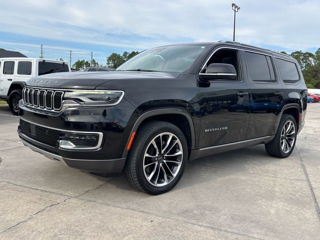Bennett Chrysler Jeep Dodge Ram is excited to offer this superb 2022 Jeep Wagoneer in Diamond Black Crystal Pearlcoat This vehicle has passed our comprehensive inspection and comes with the following Flexible Seating Group (7-Passenger Seating, Floor Console w/Cupholder, and Power Tip/Slide Recline 2nd Row Buckets), Premium Group I (DISC) (19 Speaker McIntosh Audio System, 3 Panel Sunroof, Adjustable Roof Rail Crossbars, Cargo Cover, Luxury Front & Rear Floor Mats, Power Deployable Running Boards, and Reversible Carpet/Vinyl Cargo Mat), Quick Order Package 22N, 10 Speakers, 3.21 Rear Axle Ratio, 3rd row seats: bench, 4-Wheel Disc Brakes, ABS brakes, Adjustable pedals, Air Conditioning, Alloy wheels, AM/FM radio: SiriusXM with 360L, Anti-whiplash front head restraints, Audio memory, Auto High-beam Headlights, Auto-dimming door mirrors, Auto-dimming Rear-View mirror, Auto-leveling suspension, Automatic temperature control, Brake assist, Bumpers: body-color, Compass, Delay-off headlights, Driver door bin, Driver vanity mirror, Driver's Seat Mounted Armrest, Dual front impact airbags, Dual front side impact airbags, Electronic Stability Control, Exterior Parking Camera Rear, Four wheel independent suspension, Front anti-roll bar, Front Bucket Seats, Front Center Armrest w/Storage, Front dual zone A/C, Front fog lights, Front reading lights, Fully automatic headlights, Garage door transmitter, Genuine wood console insert, Genuine wood dashboard insert, Genuine wood door panel insert, Heads-Up Display, Heated door mirrors, Heated front seats, Heated rear seats, Heated steering wheel, Illuminated entry, Knee airbag, Leather Trimmed Bucket Seats, Low tire pressure warning, Memory seat, Navigation System, Normal Duty Suspension, Occupant sensing airbag, Outside temperature display, Overhead airbag, Overhead console, Panic alarm, Passenger door bin, Passenger seat mounted armrest, Passenger vanity mirror, Pedal memory, Power adjustable front head restraints, Power door mirrors, Power driver seat, Power Liftgate, Power passenger seat, Power steering, Power windows, Radio data system, Radio: Uconnect 5 Nav w/10.1" Display, Rain sensing wipers, Rear air conditioning, Rear anti-roll bar, Rear dual zone A/C, Rear reading lights, Rear seat center armrest, Rear window defroster, Rear window wiper, Reclining 3rd row seat, Remote keyless entry, Security system, Speed control, Speed-sensing steering, Speed-Sensitive Wipers, Split folding rear seat, Steering wheel memory, Steering wheel mounted audio controls, Tachometer, Telescoping steering wheel, Tilt steering wheel, Traction control, Trip computer, Turn signal indicator mirrors, Variably intermittent wipers, Ventilated front seats, Voltmeter, Wheels: 20" x 9.0" Premium 2 Aluminum, and Wheels: 22" x 9.0" Premium 3 Aluminum (DISC);
