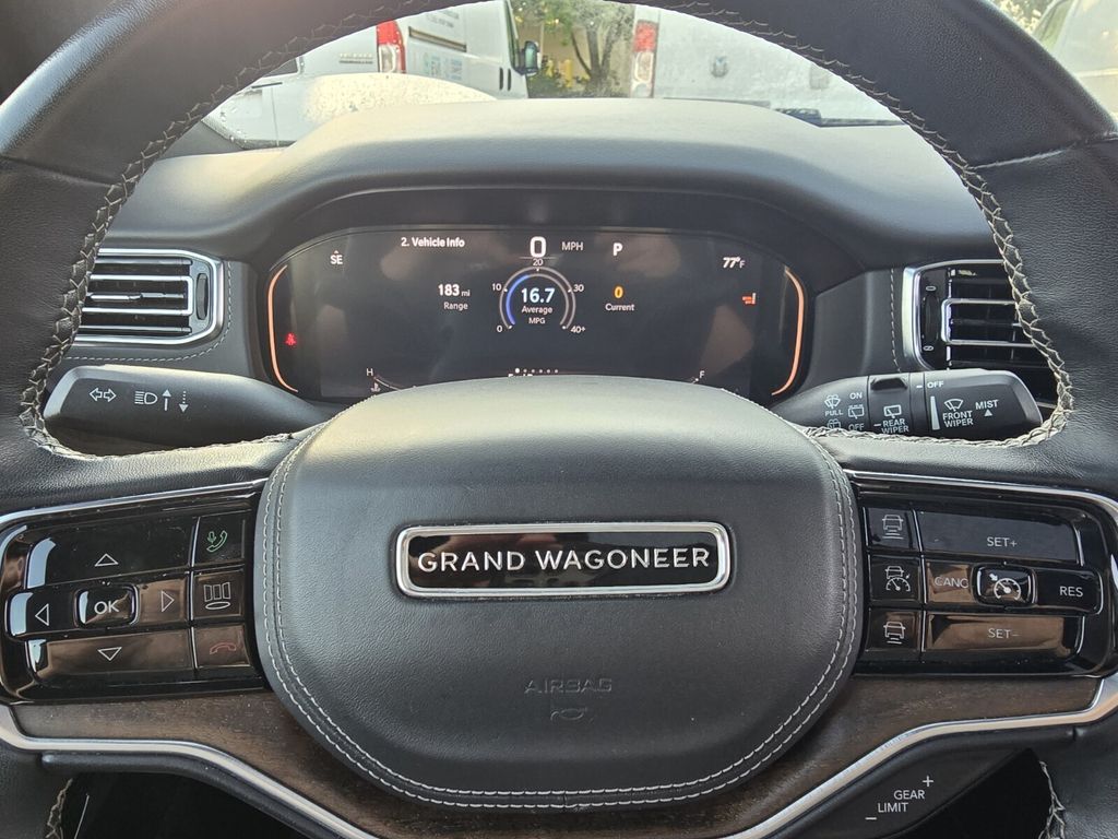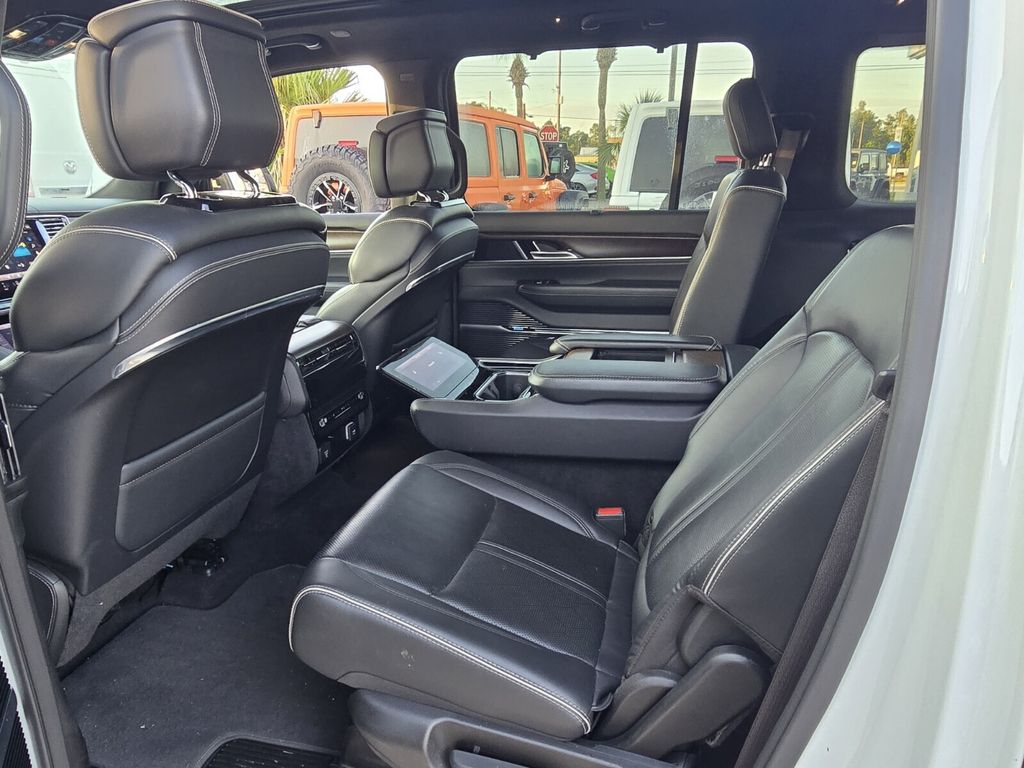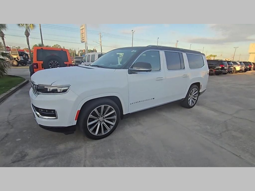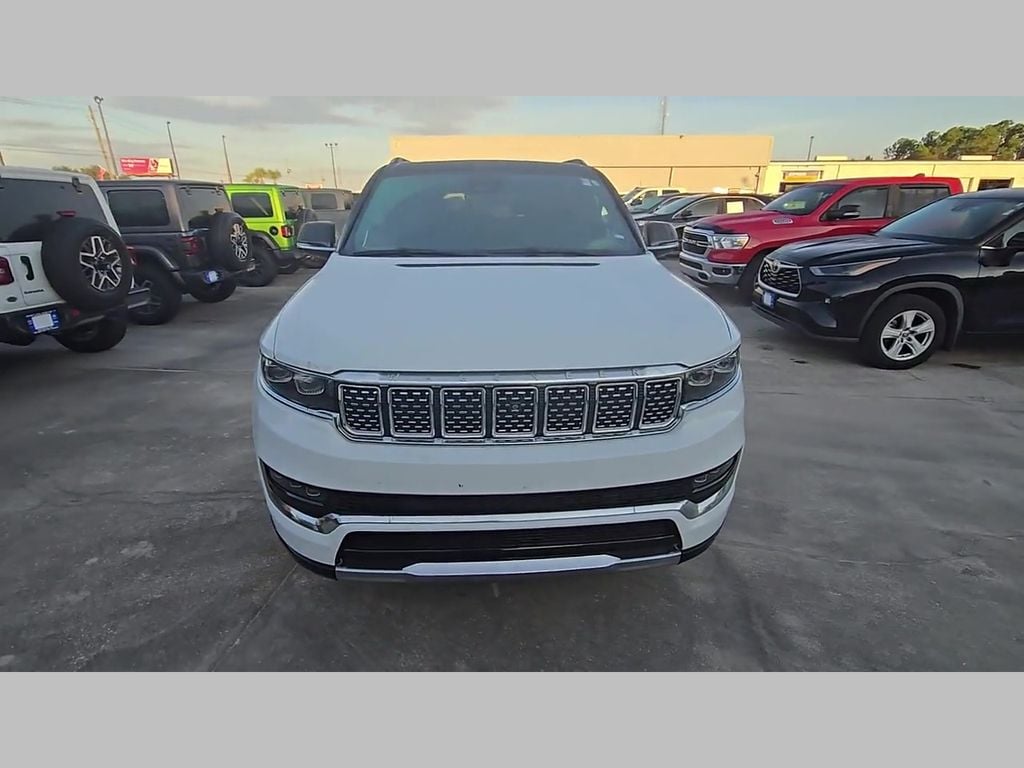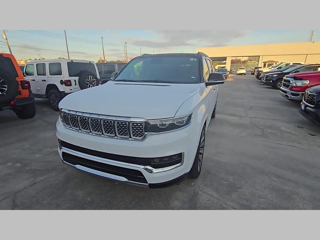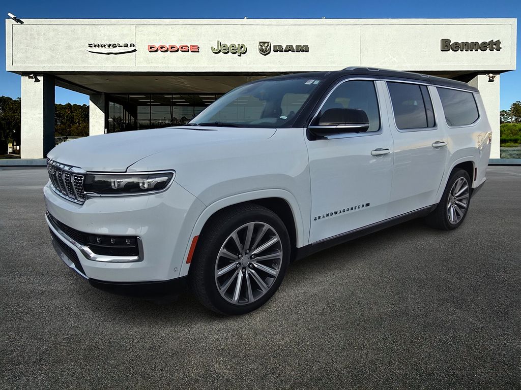 Bennett Chrysler Jeep Dodge Ram is pleased to offer this handsome 2023 Jeep Grand Wagoneer L in Bright White Clearcoat This vehicle has passed our comprehensive inspection and comes with the following Quick Order Package 28S, Two Tone Paint Group, 19 Speakers, 3.92 Rear Axle Ratio, 3rd row seats: bench, 4-Wheel Disc Brakes, ABS brakes, Adjustable pedals, Air Conditioning, Alloy wheels, AM/FM radio: SiriusXM with 360L, Anti-whiplash front head restraints, Audio memory, Auto High-beam Headlights, Auto-dimming door mirrors, Auto-dimming Rear-View mirror, Auto-leveling suspension, Automatic temperature control, Brake assist, Bumpers: body-color, Compass, Delay-off headlights, Driver door bin, Driver vanity mirror, Driver's Seat Mounted Armrest, Dual front impact airbags, Dual front side impact airbags, Electronic Stability Control, Emergency communication system: Automatic SOS Call, Four wheel independent suspension, Front anti-roll bar, Front Bucket Seats, Front Center Armrest w/Storage, Front dual zone A/C, Front fog lights, Front reading lights, Fully automatic headlights, Garage door transmitter, Genuine wood console insert, Genuine wood dashboard insert, Genuine wood door panel insert, Heads-Up Display, Heated door mirrors, Heated front seats, Heated rear seats, Heated steering wheel, Illuminated entry, Knee airbag, Leather steering wheel, Leather Trimmed Bucket Seats, Low tire pressure warning, Memory seat, Navigation System, Normal Duty Suspension, Occupant sensing airbag, Outside temperature display, Overhead airbag, Overhead console, Panic alarm, Passenger door bin, Passenger seat mounted armrest, Passenger vanity mirror, Pedal memory, Power adjustable front head restraints, Power door mirrors, Power driver seat, Power Liftgate, Power moonroof, Power passenger seat, Power steering, Power windows, Radio data system, Radio: Uconnect 5 Nav w/12.0" Display, Rain sensing wipers, Rear air conditioning, Rear anti-roll bar, Rear dual zone A/C, Rear reading lights, Rear seat center armrest, Rear window defroster, Rear window wiper, Reclining 3rd row seat, Remote keyless entry, Security system, Speed control, Speed-sensing steering, Speed-Sensitive Wipers, Split folding rear seat, Steering wheel memory, Steering wheel mounted audio controls, Tachometer, Telescoping steering wheel, Tilt steering wheel, Traction control, Trip computer, Turn signal indicator mirrors, Variably intermittent wipers, Ventilated front seats, Voltmeter, and Wheels: 22" x 9.0" Premium 1 Aluminum;