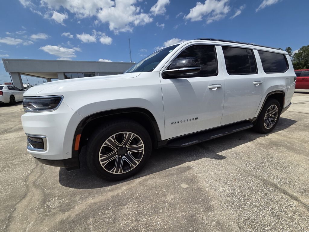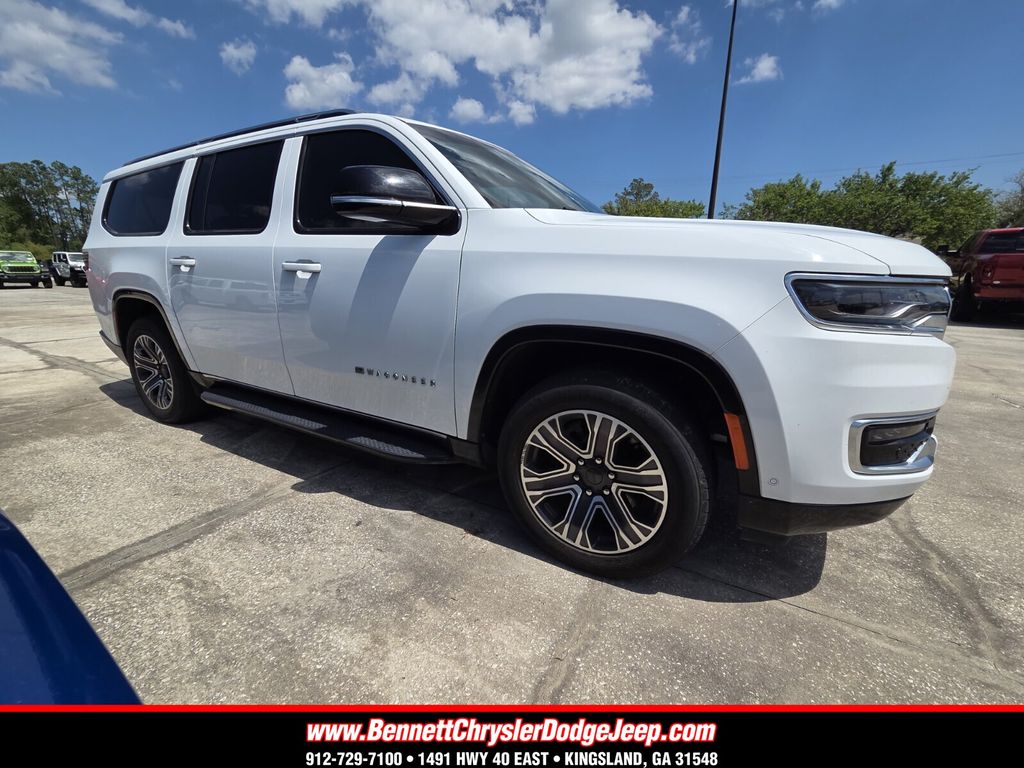 Bennett Chrysler Jeep Dodge Ram is pleased to offer this fantastic 2023 Jeep Wagoneer L in Bright White Clearcoat This vehicle has passed our comprehensive inspection and comes with the following Quick Order Package 25J, 10 Speakers, 3.55 Rear Axle Ratio, 3rd row seats: bench, 4-Wheel Disc Brakes, ABS brakes, Adjustable pedals, Air Conditioning, Alloy wheels, AM/FM radio: SiriusXM with 360L, Anti-whiplash front head restraints, Audio memory, Auto-dimming door mirrors, Auto-dimming Rear-View mirror, Auto-leveling suspension, Automatic temperature control, Brake assist, Bumpers: body-color, Compass, Delay-off headlights, Driver door bin, Driver vanity mirror, Driver's Seat Mounted Armrest, Dual front impact airbags, Dual front side impact airbags, Electronic Stability Control, Emergency communication system: Automatic SOS Call, Exterior Parking Camera Rear, Four wheel independent suspension, Front anti-roll bar, Front Bucket Seats, Front Center Armrest w/Storage, Front dual zone A/C, Front fog lights, Front reading lights, Fully automatic headlights, Garage door transmitter, Genuine wood console insert, Genuine wood dashboard insert, Genuine wood door panel insert, Heated door mirrors, Heated front seats, Heated steering wheel, Illuminated entry, Knee airbag, Leather Trimmed Bucket Seats, Low tire pressure warning, Memory seat, Navigation System, Normal Duty Suspension, Occupant sensing airbag, Outside temperature display, Overhead airbag, Overhead console, Panic alarm, Passenger door bin, Passenger seat mounted armrest, Passenger vanity mirror, Pedal memory, Power adjustable front head restraints, Power door mirrors, Power driver seat, Power Liftgate, Power passenger seat, Power steering, Power windows, Radio data system, Radio: Uconnect 5 Nav w/10.1" Display, Rain sensing wipers, Rear air conditioning, Rear anti-roll bar, Rear reading lights, Rear seat center armrest, Rear window defroster, Rear window wiper, Reclining 3rd row seat, Remote keyless entry, Security system, Speed control, Speed-sensing steering, Speed-Sensitive Wipers, Split folding rear seat, Steering wheel memory, Steering wheel mounted audio controls, Tachometer, Telescoping steering wheel, Tilt steering wheel, Traction control, Trip computer, Turn signal indicator mirrors, Variably intermittent wipers, Ventilated front seats, Voltmeter, and Wheels: 20" x 9.0" Premium 2 Aluminum;