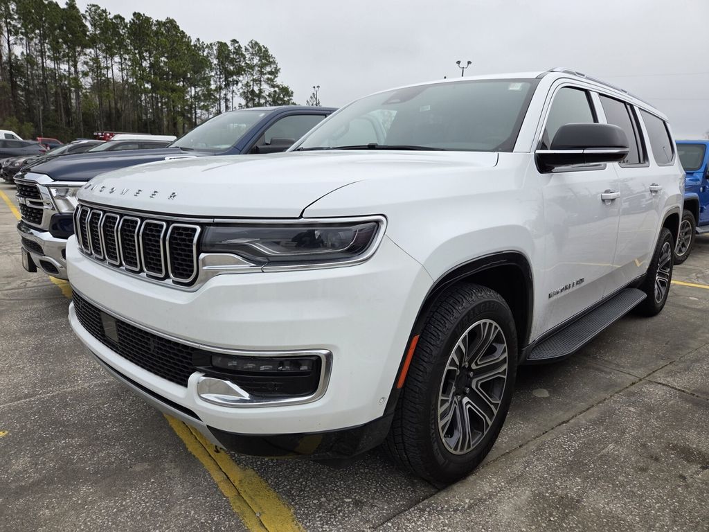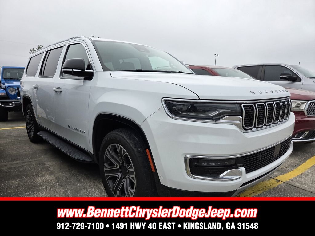 Bennett Chrysler Jeep Dodge Ram is proud to offer this gorgeous-looking 2023 Jeep Wagoneer L in Bright White Clearcoat This vehicle has passed our comprehensive inspection and comes with the following Quick Order Package 25J, 10 Speakers, 3.55 Rear Axle Ratio, 3rd row seats: bench, 4-Wheel Disc Brakes, ABS brakes, Adjustable pedals, Air Conditioning, Alloy wheels, AM/FM radio: SiriusXM with 360L, Anti-whiplash front head restraints, Audio memory, Auto-dimming door mirrors, Auto-dimming Rear-View mirror, Auto-leveling suspension, Automatic temperature control, Brake assist, Bumpers: body-color, Compass, Delay-off headlights, Driver door bin, Driver vanity mirror, Driver's Seat Mounted Armrest, Dual front impact airbags, Dual front side impact airbags, Electronic Stability Control, Emergency communication system: Automatic SOS Call, Exterior Parking Camera Rear, Four wheel independent suspension, Front anti-roll bar, Front Bucket Seats, Front Center Armrest w/Storage, Front dual zone A/C, Front fog lights, Front reading lights, Fully automatic headlights, Garage door transmitter, Genuine wood console insert, Genuine wood dashboard insert, Genuine wood door panel insert, Heated door mirrors, Heated front seats, Heated steering wheel, Illuminated entry, Knee airbag, Leather Trimmed Bucket Seats, Low tire pressure warning, Memory seat, Navigation System, Normal Duty Suspension, Occupant sensing airbag, Outside temperature display, Overhead airbag, Overhead console, Panic alarm, Passenger door bin, Passenger seat mounted armrest, Passenger vanity mirror, Pedal memory, Power adjustable front head restraints, Power door mirrors, Power driver seat, Power Liftgate, Power passenger seat, Power steering, Power windows, Radio data system, Radio: Uconnect 5 Nav w/10.1" Display, Rain sensing wipers, Rear air conditioning, Rear anti-roll bar, Rear reading lights, Rear seat center armrest, Rear window defroster, Rear window wiper, Reclining 3rd row seat, Remote keyless entry, Security system, Speed control, Speed-sensing steering, Speed-Sensitive Wipers, Split folding rear seat, Steering wheel memory, Steering wheel mounted audio controls, Tachometer, Telescoping steering wheel, Tilt steering wheel, Traction control, Trip computer, Turn signal indicator mirrors, Variably intermittent wipers, Ventilated front seats, Voltmeter, and Wheels: 20" x 9.0" Premium 2 Aluminum;