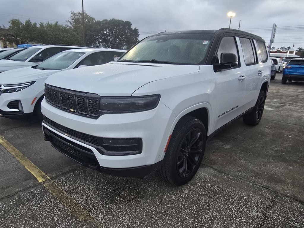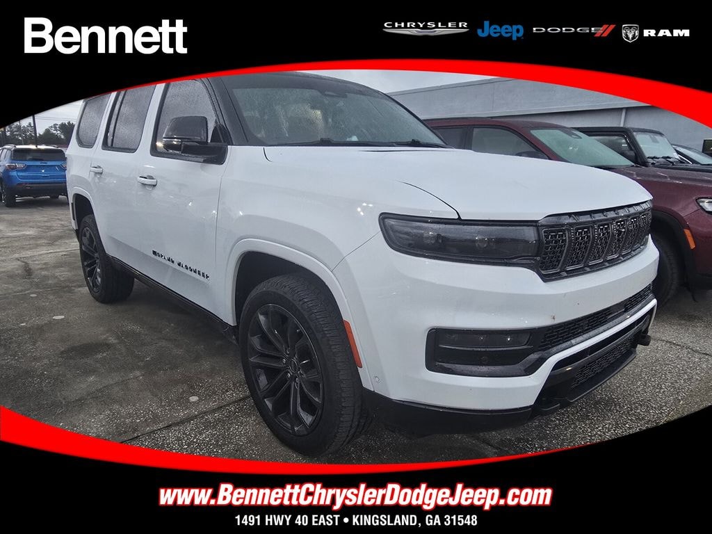 Bennett Chrysler Jeep Dodge Ram is pumped up to offer this attractive-looking 2024 Jeep Grand Wagoneer in Bright White Clearcoat This vehicle has passed our comprehensive inspection and comes with the following HD Trailer Tow Package (Heavy-Duty Engine Cooling, Removable Rear Tow Hook, Trailer Brake Control, and Trailer Hitch Zoom), MOPAR Interior Protection Package (All-Season Floor Mats and Cargo Tray), Obsidian Appearance Package, Quick Order Package 28T Obsidian (Black Interior Accents, Black Roof, Gloss Black Upper & Lower DLO Molding, Piano Black Exterior Accents, and Wheels: 22" x 9.0" Tinted Polished w/Black Insert), Rear Seat Video Group 1 (Amazon Fire TV Built-In, Seatback Video Screens, and Video USB Port), Two Tone Paint Group, 3.92 Rear Axle Ratio, 3rd row seats: bench, 4-Wheel Disc Brakes, ABS brakes, Adjustable pedals, Air Conditioning, Alloy wheels, AM/FM radio: SiriusXM with 360L, Anti-whiplash front head restraints, Apple CarPlay/Android Auto, Audio memory, Auto High-beam Headlights, Auto-dimming door mirrors, Auto-dimming Rear-View mirror, Auto-leveling suspension, Automatic temperature control, Brake assist, Bumpers: body-color, Compass, Delay-off headlights, Driver door bin, Driver vanity mirror, Driver's Seat Mounted Armrest, Dual front impact airbags, Dual front side impact airbags, Electronic Stability Control, Emergency communication system: Wagoneer Connect, Four wheel independent suspension, Front anti-roll bar, Front Bucket Seats, Front Center Armrest w/Storage, Front dual zone A/C, Front fog lights, Front reading lights, Fully automatic headlights, Garage door transmitter, Genuine wood console insert, Genuine wood dashboard insert, Genuine wood door panel insert, Heads-Up Display, Heated door mirrors, Heated front seats, Heated rear seats, Heated steering wheel, Illuminated entry, Knee airbag, Leather steering wheel, Low tire pressure warning, Memory seat, Navigation System, Night vision lights, Normal Duty Suspension, Occupant sensing airbag, Outside temperature display, Overhead airbag, Overhead console, Panic alarm, Passenger door bin, Passenger seat mounted armrest, Passenger vanity mirror, Pedal memory, Power adjustable front head restraints, Power door mirrors, Power driver seat, Power Liftgate, Power moonroof, Power passenger seat, Power steering, Power windows, Premium Leather Trimmed Bucket Seats, Radio data system, Radio: Uconnect 5 Nav w/12.0" Display, Rain sensing wipers, Rear air conditioning, Rear anti-roll bar, Rear dual zone A/C, Rear reading lights, Rear seat center armrest, Rear window defroster, Rear window wiper, Reclining 3rd row seat, Remote keyless entry, Roof rack, Security system, Speed control, Speed-sensing steering, Speed-Sensitive Wipers, Split folding rear seat, Steering wheel memory, Steering wheel mounted audio controls, Tachometer, Telescoping steering wheel, Tilt steering wheel, Traction control, Trip computer, Turn signal indicator mirrors, Variably intermittent wipers, Ventilated front seats, Ventilated rear seats, Voltmeter, and Wheels: 22" x 9.0" Premium 4 Aluminum;