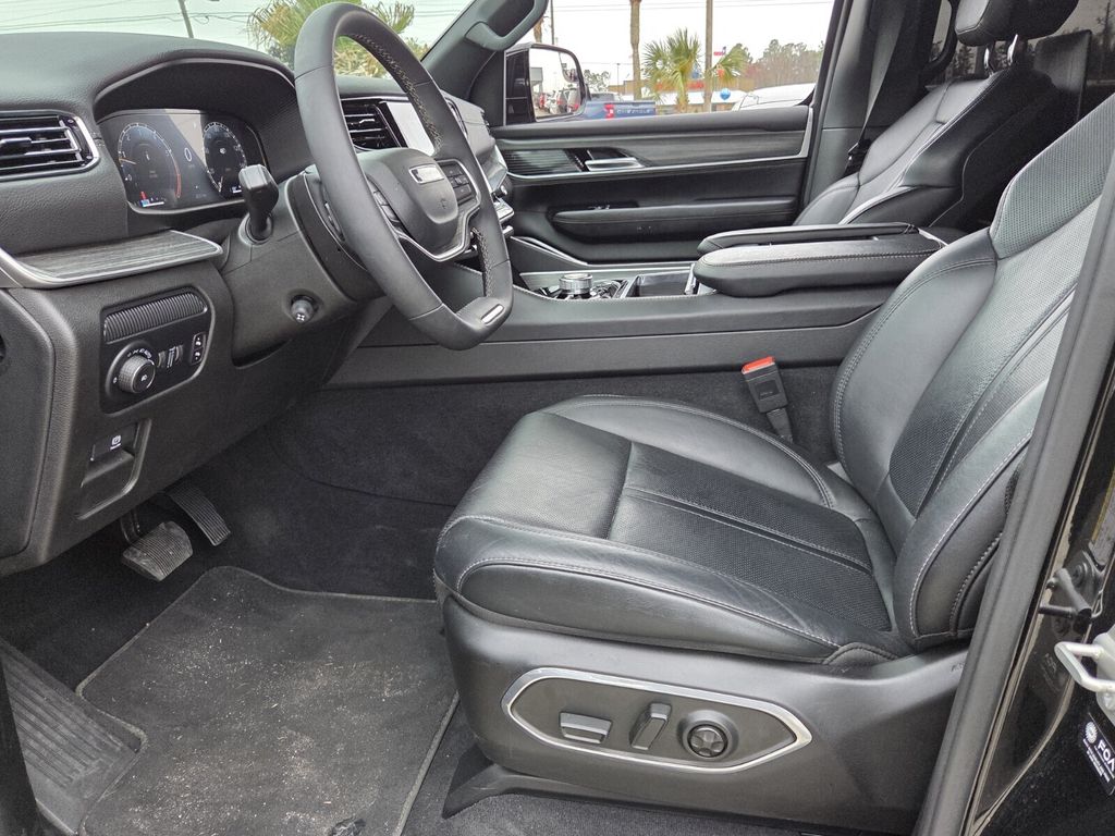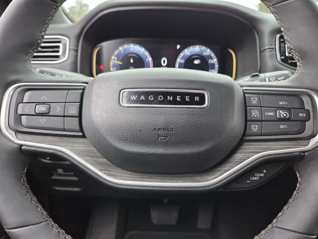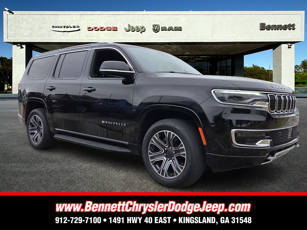 Bennett Chrysler Jeep Dodge Ram is proud to offer this great 2024 Jeep Wagoneer in Diamond Black Crystal Pearlcoat This vehicle has passed our comprehensive inspection and comes with the following Flexible Seating Group (40/20/40 2nd Row Bench Power Tip/Slide, 60/40 Power Recline 3rd Row Seat, 8-Passenger Seating, and Full Length Floor Console), HD Trailer Tow Package (2 Speed On Demand Transfer Case, Electronic Rear Limited Slip Differential, Heavy-Duty Engine Cooling, Removable Rear Tow Hook, Selec-Speed Control, Trailer Brake Control, and Trailer Hitch Zoom), Quick Order Package 25J, Rear Seat Video Group 1 (DISC) (Amazon Fire TV Built-In, Seatback Video Screens, and Video USB Port), 10 Speakers, 118 MPH Maximum Speed Calibration, 3rd row seats: bench, 4-Wheel Disc Brakes, ABS brakes, Adjustable pedals, Air Conditioning, Alloy wheels, AM/FM radio: SiriusXM with 360L, Anti-whiplash front head restraints, Apple CarPlay/Android Auto, Audio memory, Auto-dimming door mirrors, Auto-dimming Rear-View mirror, Auto-leveling suspension, Automatic temperature control, Brake assist, Bumpers: body-color, Compass, Delay-off headlights, Driver door bin, Driver vanity mirror, Driver's Seat Mounted Armrest, Dual front impact airbags, Dual front side impact airbags, Electronic Stability Control, Emergency communication system: Wagoneer Connect, Exterior Parking Camera Rear, Four wheel independent suspension, Front anti-roll bar, Front Bucket Seats, Front Center Armrest w/Storage, Front dual zone A/C, Front fog lights, Front reading lights, Fully automatic headlights, Garage door transmitter, Genuine wood console insert, Genuine wood dashboard insert, Genuine wood door panel insert, Heated door mirrors, Heated front seats, Heated rear seats, Heated steering wheel, Illuminated entry, Knee airbag, Leather Trimmed Bucket Seats, Low tire pressure warning, Memory seat, Navigation System, Normal Duty Suspension, Occupant sensing airbag, Outside temperature display, Overhead airbag, Overhead console, Panic alarm, Passenger door bin, Passenger seat mounted armrest, Passenger vanity mirror, Pedal memory, Power adjustable front head restraints, Power door mirrors, Power driver seat, Power Liftgate, Power passenger seat, Power steering, Power windows, Radio data system, Radio: Uconnect 5 Nav w/10.1" Display, Rain sensing wipers, Rear air conditioning, Rear anti-roll bar, Rear dual zone A/C, Rear reading lights, Rear seat center armrest, Rear window defroster, Rear window wiper, Reclining 3rd row seat, Remote keyless entry, Security system, Speed control, Speed-sensing steering, Speed-Sensitive Wipers, Split folding rear seat, Steering wheel memory, Steering wheel mounted audio controls, Tachometer, Telescoping steering wheel, Tilt steering wheel, Traction control, Trip computer, Turn signal indicator mirrors, Variably intermittent wipers, Ventilated front seats, Voltmeter, and Wheels: 20" x 9.0" Premium 2 Aluminum;
