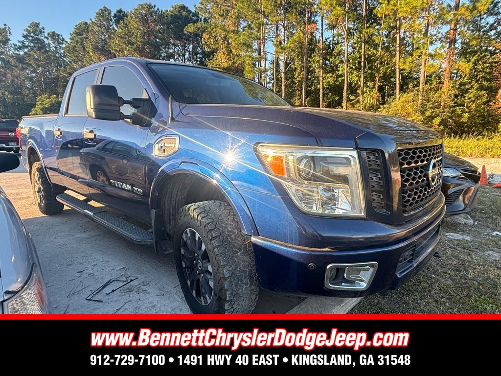 Bennett Chrysler Jeep Dodge Ram is very proud to offer this superb 2017 Nissan Titan XD in Deep Blue Pearl This vehicle has passed our comprehensive inspection and comes with the following PRO-4X Convenience Package (Auto-Dimming Outside Mirrors, Engine Remote Start Function, Heated Front Captain's Seats, Heated Power Tilt/Telescopic Steering Wheel, Heated Rear Seats, and Leather Seat Trim w/Contrast Stitching), PRO-4X Luxury Package (Around View Monitor and Ventilated Driver & Front Passenger Seats), PRO-4X Utility & Audio Package (Electronic Locking Tailgate, Rear Utility Bed Step, and Rockford Fosgate Premium Audio w/12 Speakers), 3.916 Axle Ratio, 4-Wheel Disc Brakes, 6 Speaker System, 6 Speakers, ABS brakes, Air Conditioning, Alloy wheels, AM/FM radio: SiriusXM, Automatic temperature control, Block heater, Brake assist, CD player, Delay-off headlights, Driver door bin, Driver vanity mirror, Dual front impact airbags, Dual front side impact airbags, Electronic Stability Control, Front anti-roll bar, Front Bucket Seats, Front Captain's Chairs, Front Center Armrest, Front dual zone A/C, Front fog lights, Front reading lights, Front wheel independent suspension, Heated door mirrors, Illuminated entry, Leather steering wheel, Low tire pressure warning, Navigation System, Occupant sensing airbag, Outside temperature display, Overhead airbag, Overhead console, Panic alarm, Passenger door bin, Passenger vanity mirror, Power door mirrors, Power driver seat, Power steering, Power windows, Radio data system, Radio: NissanConnect w/SiriusXM/Navi & Mobile Apps, Rain sensing wipers, Rear anti-roll bar, Rear seat center armrest, Rear step bumper, Rear window defroster, Remote keyless entry, Security system, Speed control, Speed-sensing steering, Speed-Sensitive Wipers, Split folding rear seat, Stain Resistant Cloth Seat Trim w/Vinyl Bolsters, Steering wheel mounted audio controls, Tachometer, Telescoping steering wheel, Tilt steering wheel, Traction control, Turn signal indicator mirrors, Variably intermittent wipers, Voltmeter, and Wheels: 18" x 7.5" Dark Painted Finish Alloy;