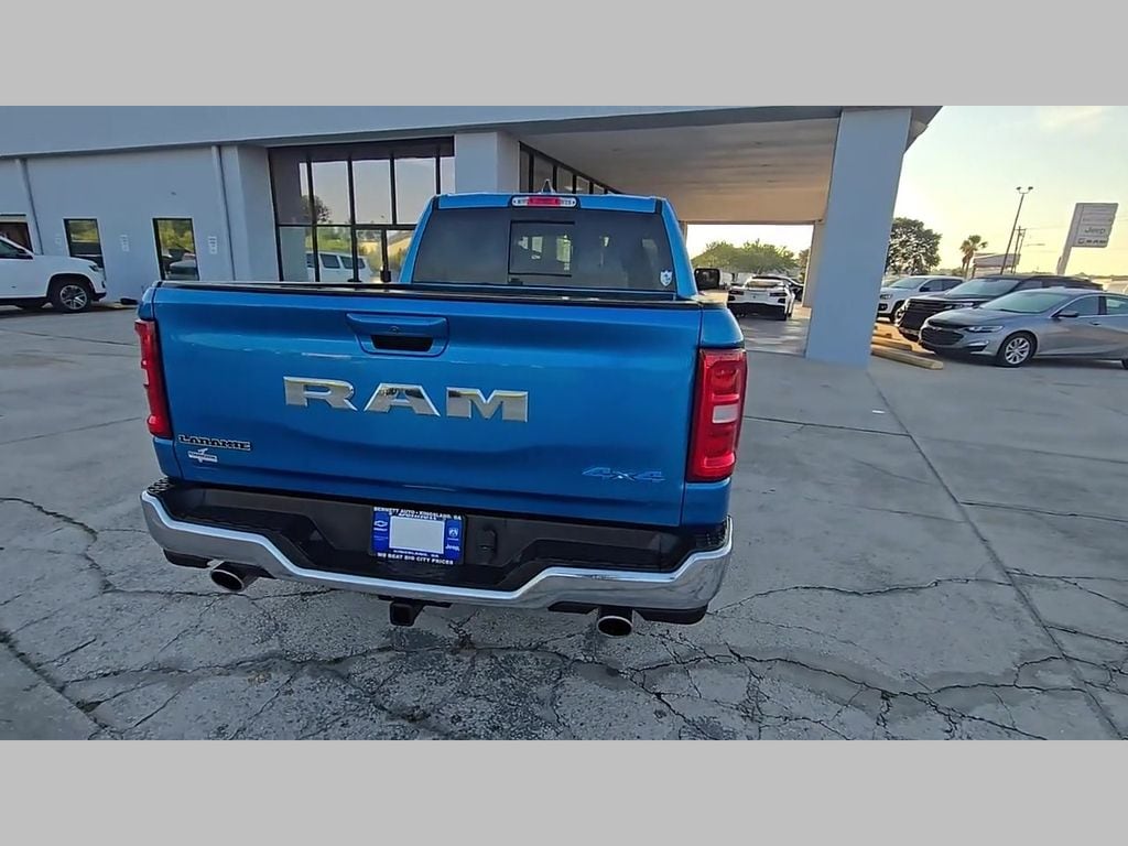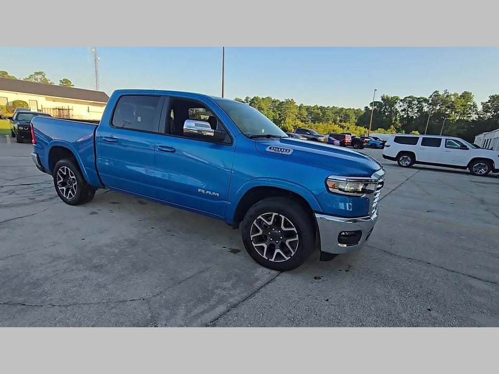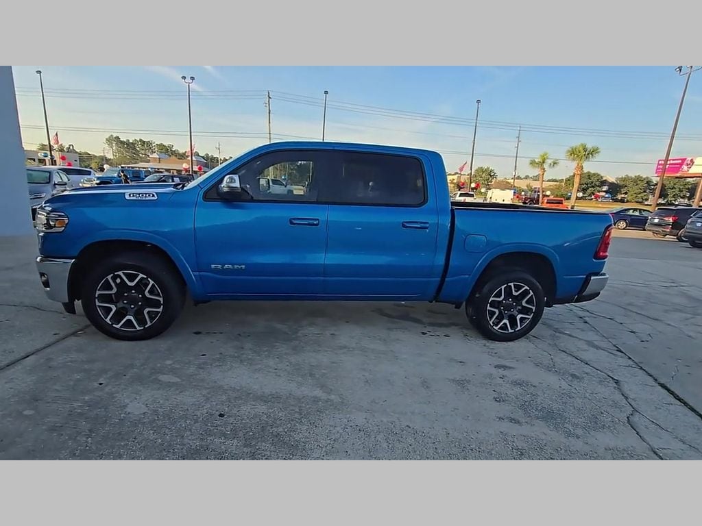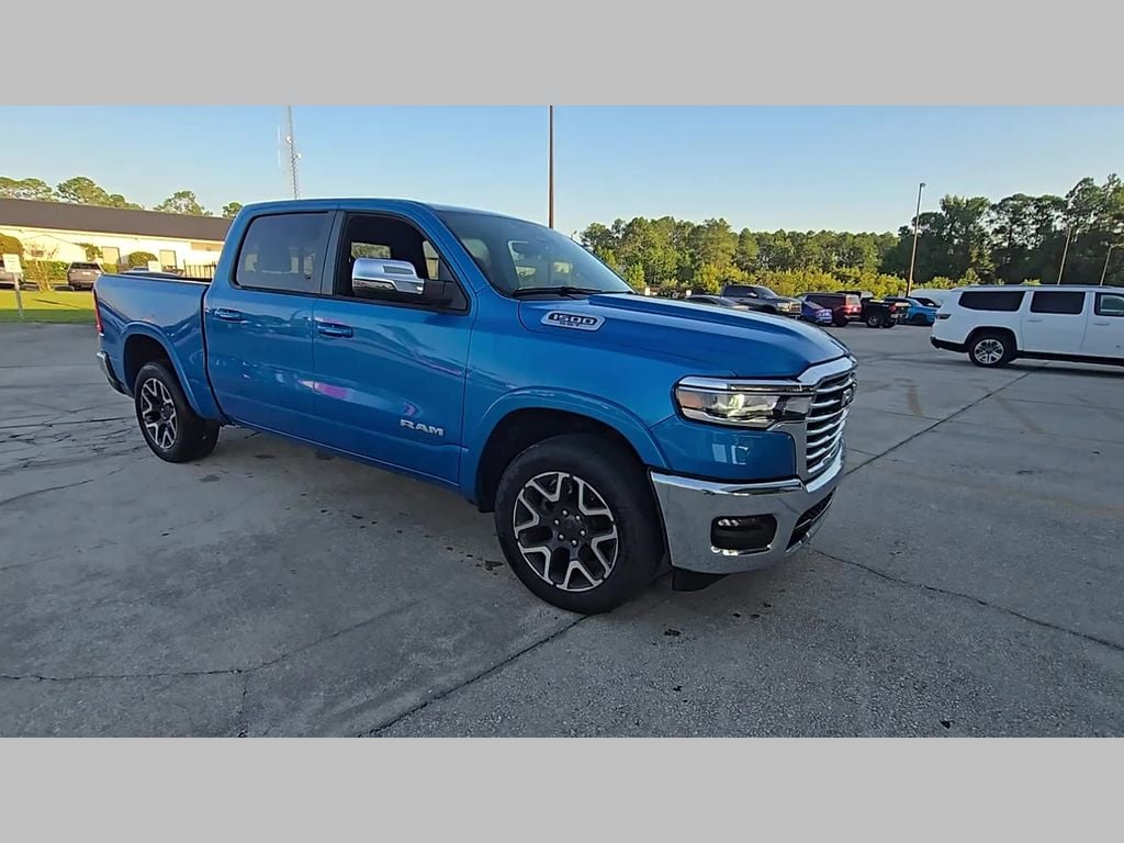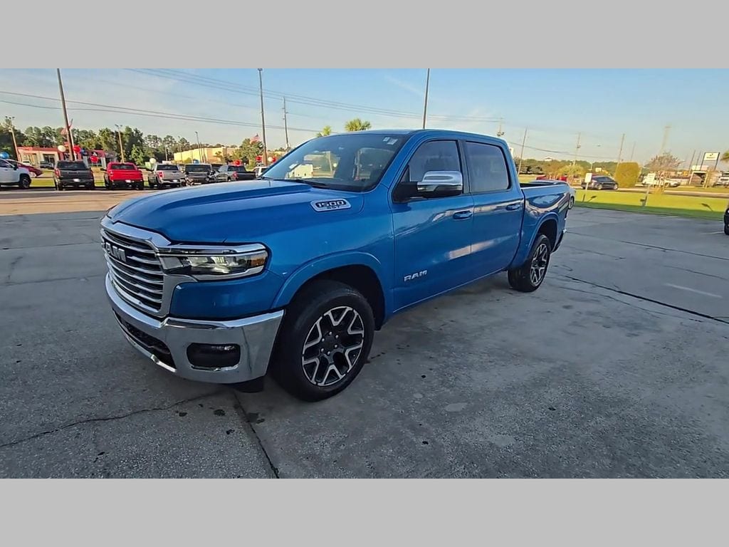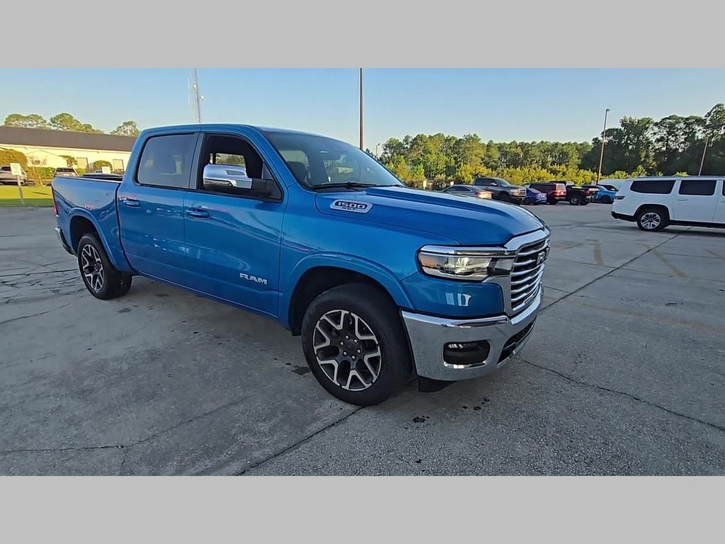Bennett Chrysler Jeep Dodge Ram is pumped up to offer this great-looking 2025 Ram 1500 in Hydro Blue Pearlcoat This vehicle has passed our comprehensive inspection and comes with the following Laramie Level 1 Equipment Group (Rain Sensitive Windshield Wipers and Remote Tailgate Release), Quick Order Package 21H Laramie, 10 Speakers, 3 Rear Seat Head Restraints, 3.55 Rear Axle Ratio, 4 Way Front Headrests, 4-Wheel Disc Brakes, 4G LTE Wi-Fi Hot Spot, ABS brakes, Air Conditioning, Alloy wheels, AM/FM radio: SiriusXM with 360L, Apple CarPlay, Apple CarPlay/Android Auto, Audio memory, Auto High-beam Headlights, Auto Power-Folding Mirrors, Auto-dimming door mirrors, Auto-Dimming Exterior Driver Mirror, Auto-dimming Rear-View mirror, Automatic temperature control, Brake assist, Bumpers: chrome, Chrome Exterior Mirrors, Compass, Connected Travel & Traffic Services, Connectivity - US/Canada, Convex Wide-Angle Exterior Mirror Insert, Delay-off headlights, Driver door bin, Driver Seat Memory, Driver vanity mirror, Dual front impact airbags, Dual front side impact airbags, Electronic Stability Control, Exterior Mirrors Courtesy Lamps, Exterior Mirrors w/Heating Element, Exterior Mirrors w/Memory, Exterior Mirrors w/Supplemental Signals, Front anti-roll bar, Front Center Armrest w/Storage, Front dual zone A/C, Front fog lights, Front reading lights, Front Seat Back Map Pockets, Front wheel independent suspension, Fully automatic headlights, Garage door transmitter, Google Android Auto, GPS Antenna Input, GPS Navigation, HD Radio, Heated door mirrors, Heated Front Seats, Heated front seats, Heated rear seats, Heated Steering Wheel, Heated steering wheel, Illuminated entry, Integrated Voice Command w/Bluetooth, Leather steering wheel, Leather Trim 40/20/40 Bench Seat, Low tire pressure warning, Memory seat, MOPAR Front & Rear Rubber Floor Mats, Navigation System, Occupant sensing airbag, Outside temperature display, Overhead airbag, Overhead console, Panic alarm, ParkView Rear Back-Up Camera, Passenger door bin, Passenger vanity mirror, Power 2-Way Driver Lumbar Adjust, Power 2-Way Passenger Lumbar Adjust, Power Adjust 8-Way Front Passenger Seat, Power door mirrors, Power driver seat, Power passenger seat, Power steering, Power windows, Radio data system, Radio: Uconnect 5 Nav w/12.0" Display, RAM Grille Badge - Chrome, Rear anti-roll bar, Rear reading lights, Rear seat center armrest, Rear step bumper, Remote keyless entry, Security system, SiriusXM w/360L, Speed control, Split folding rear seat, Steering wheel mounted audio controls, Tachometer, Telescoping steering wheel, Tilt steering wheel, Traction control, Trip computer, Turn signal indicator mirrors, USB Host Flip, Variably intermittent wipers, Ventilated Front Seats, Ventilated front seats, Voltmeter, and Wheels: 20" x 9" Premium Paint/Polish;