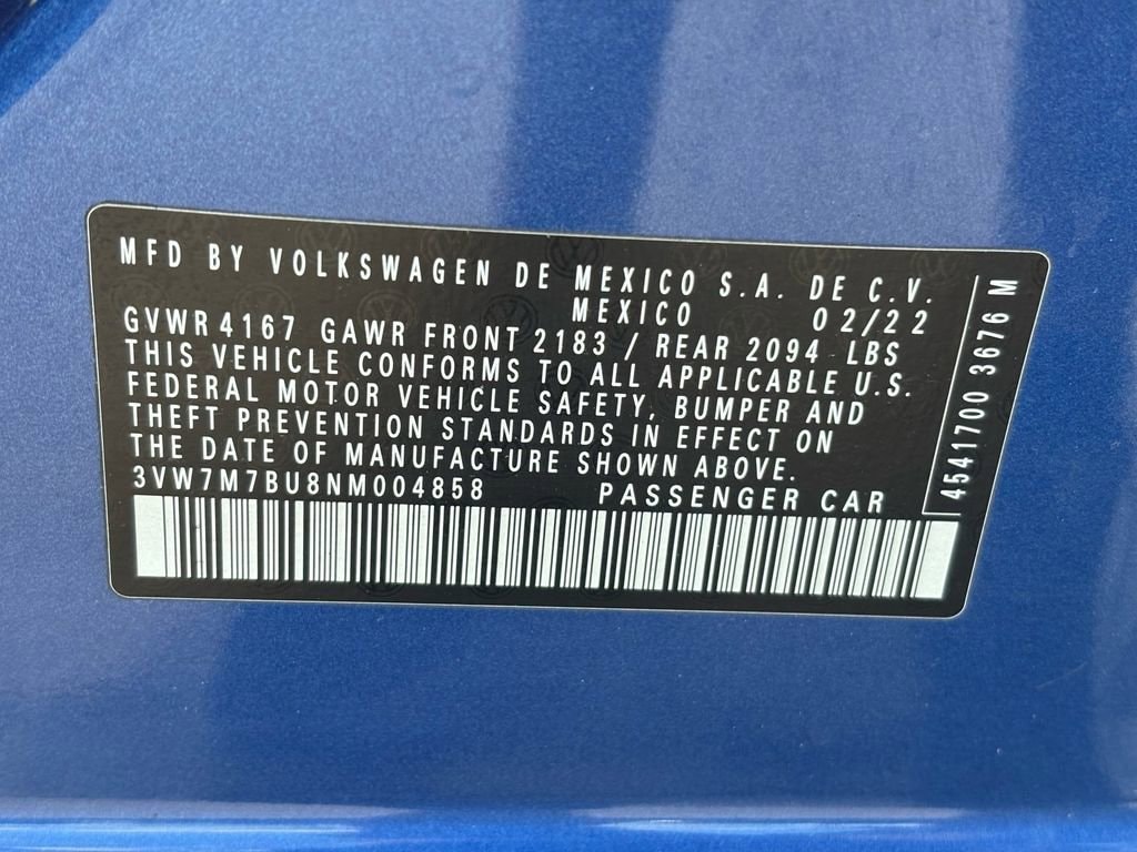Bennett Chevrolet Buick is pumped up to offer this great-looking 2022 Volkswagen Jetta in Silver Mist This vehicle has passed our comprehensive inspection and comes with the following Black/Alloy/Black Artificial Leather, 4 Speakers, 4-Wheel Disc Brakes, ABS brakes, Active Blind Spot Monitor, Air Conditioning, Alloy wheels, AM/FM radio, Auto-dimming Rear-View mirror, Automatic temperature control, Brake assist, Bumpers: body-color, Delay-off headlights, Driver door bin, Driver vanity mirror, Dual front impact airbags, Dual front side impact airbags, Electronic Stability Control, Emergency communication system: Car-Net, Exterior Parking Camera Rear, Front anti-roll bar, Front Bucket Seats, Front Center Armrest, Front dual zone A/C, Front wheel independent suspension, Fully automatic headlights, Heated door mirrors, Heated Front Comfort Sport Seats, Heated front seats, Illuminated entry, Leather Shift Knob, Low tire pressure warning, Occupant sensing airbag, Outside temperature display, Overhead airbag, Overhead console, Panic alarm, Passenger door bin, Passenger vanity mirror, Power door mirrors, Power driver seat, Power steering, Power windows, Radio data system, Radio: MIB3 Composition Color w/6.5 Touchscreen, Rain sensing wipers, Rear anti-roll bar, Rear reading lights, Rear seat center armrest, Rear window defroster, Remote keyless entry, Speed control, Speed-sensing steering, Split folding rear seat, Steering wheel mounted audio controls, Tachometer, Telescoping steering wheel, Tilt steering wheel, Traction control, Trip computer, V-Tex Leatherette Seat Trim, Variably intermittent wipers, and Wheels: 17 Twin 5-Spoke Silver Painted Alloy; Black/Alloy/Black Artificial Leather.